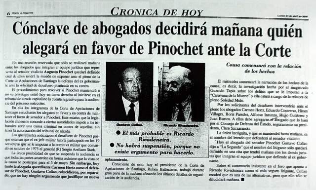 Cónclave de abogados decidirá mañana quién alegará en favor de Pinochet ante la Corte