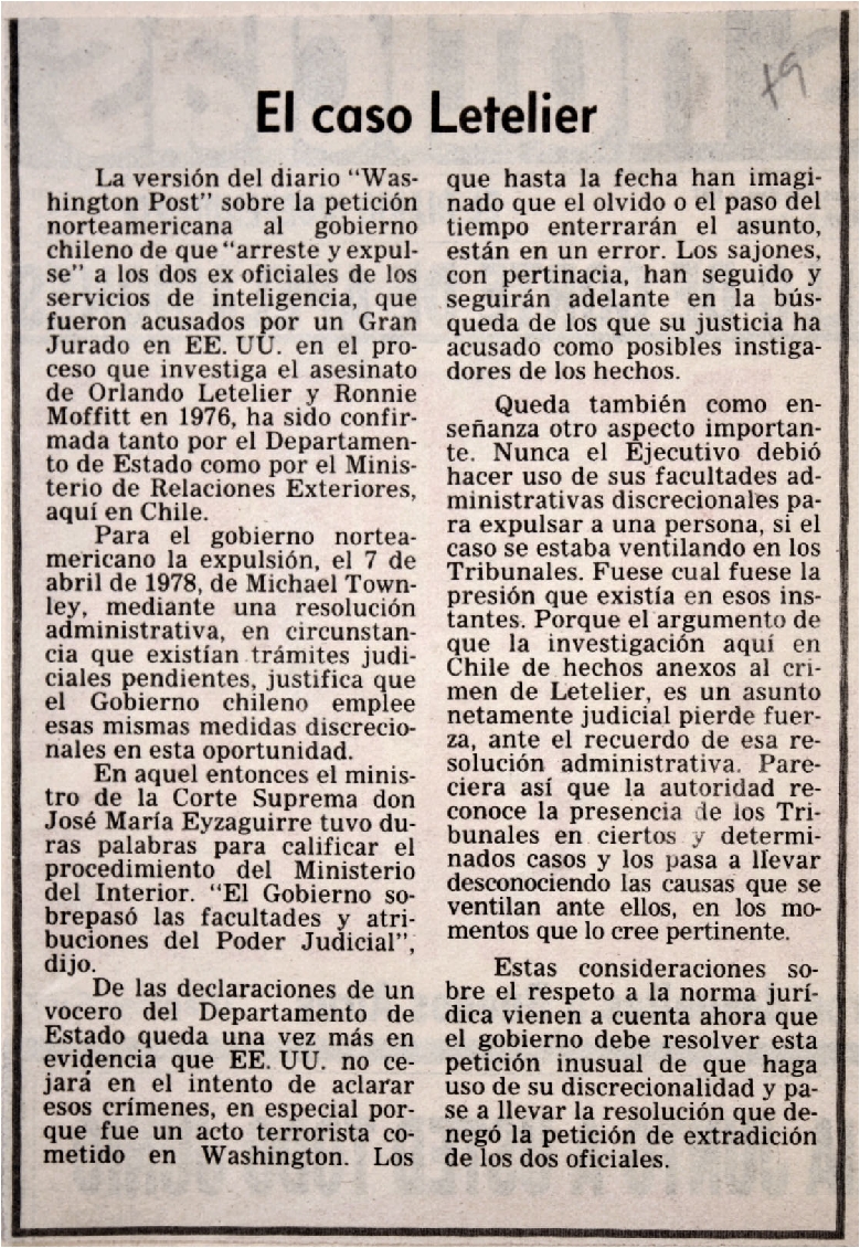 Letelier, Orlando 1932 - 1976 - Homicidio