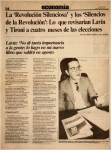 Los avances que expresaba en su libro La Revolución Silenciosa Joaquín Lavín, y la otra cara expresada por Eugenio Tironi en su libro Los Silencios de la Revolución.