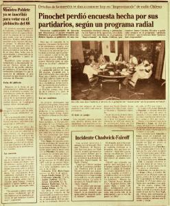 Pinochet perdió encuesta hecha por sus partidarios, según un programa radial