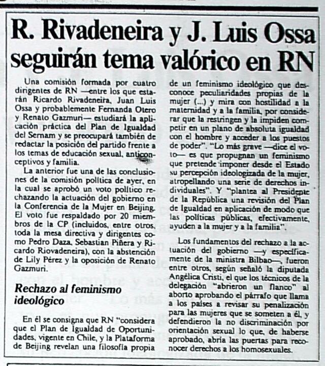Una comisión de R.N. estudiará el plan de igualdad del SERNAM como asimismo temas de educación sexual, anticonceptivos y familia