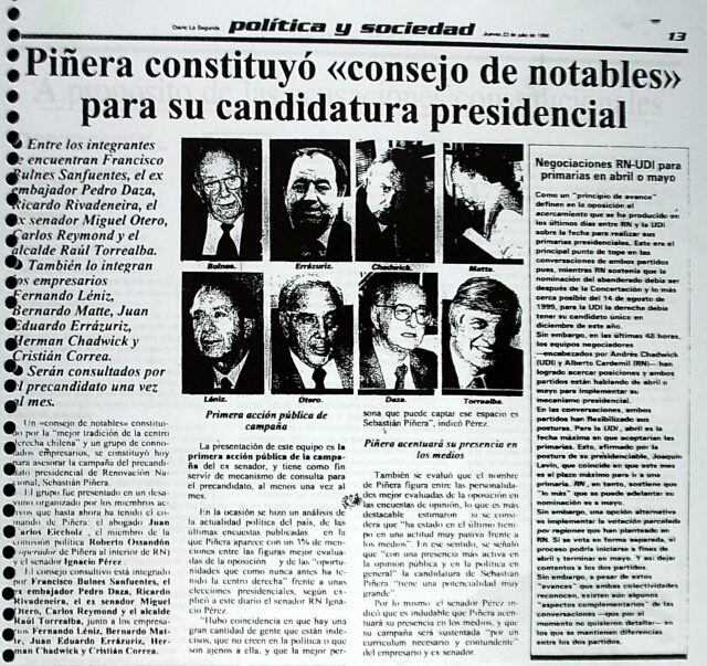 Piñera constituyó consejo de notables para su candidatura presidencial