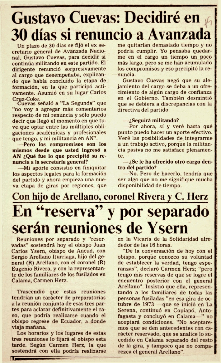 La Segunda, Santiago, 8 de junio de 1987.