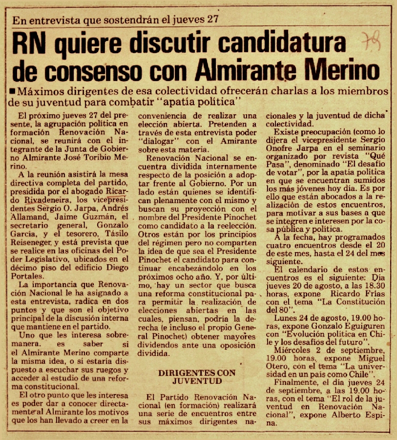 RN quiere discutir candidatura de consenso con Almirante Merino