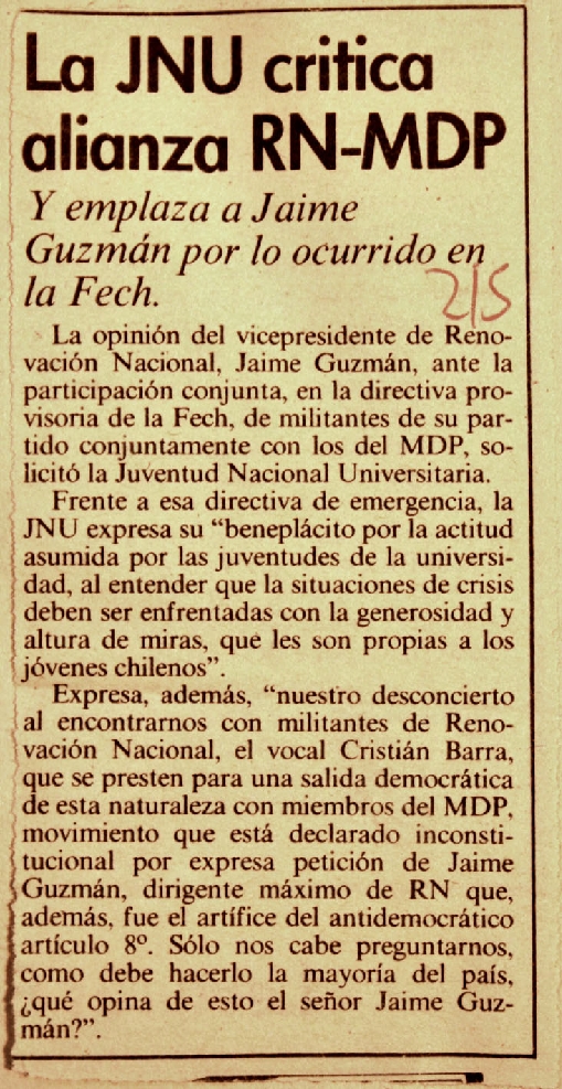 Y emplaza a Jaime Guzmán por lo ocurrido en la Fech.