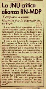 La JNU critica alianza RN-MDP