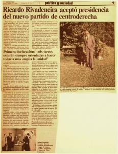 Ricardo Rivadeneira aceptó presidencia del nuevo partido de centroderecha