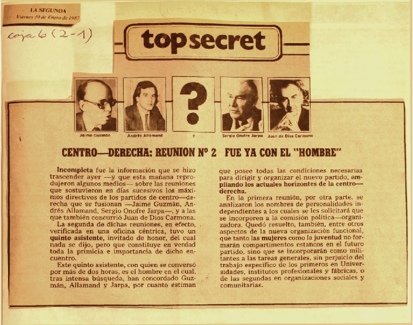 Fotos de Jaime Guzmán, Andrés Allamand, Sergio Onofre Jarpa, y Juan de Dios Carmona.