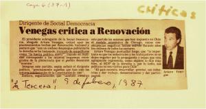 Dirigente de Social Democracia Arturo Venegas critica a Renovación