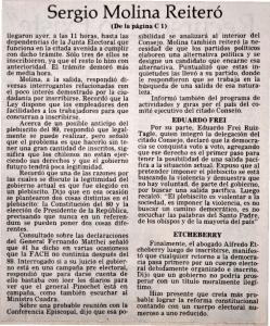 Sergio Molina declaró que la democracia se gana votando y no de otra manera, se refirió tambien al plebiscito