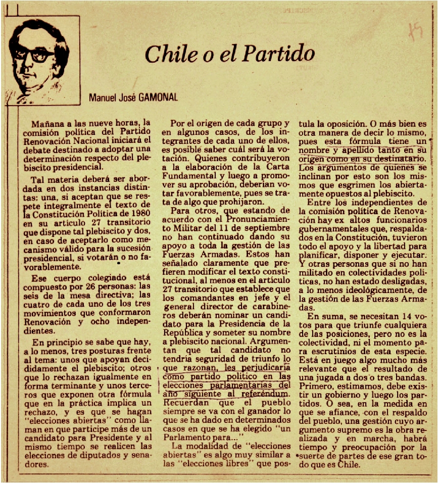 Mañana a las nueve horas, la comisión política del Partido Renovación Nacional iniciará el debate destinado a adoptar una determinación respecto del plebiscito presidencial.