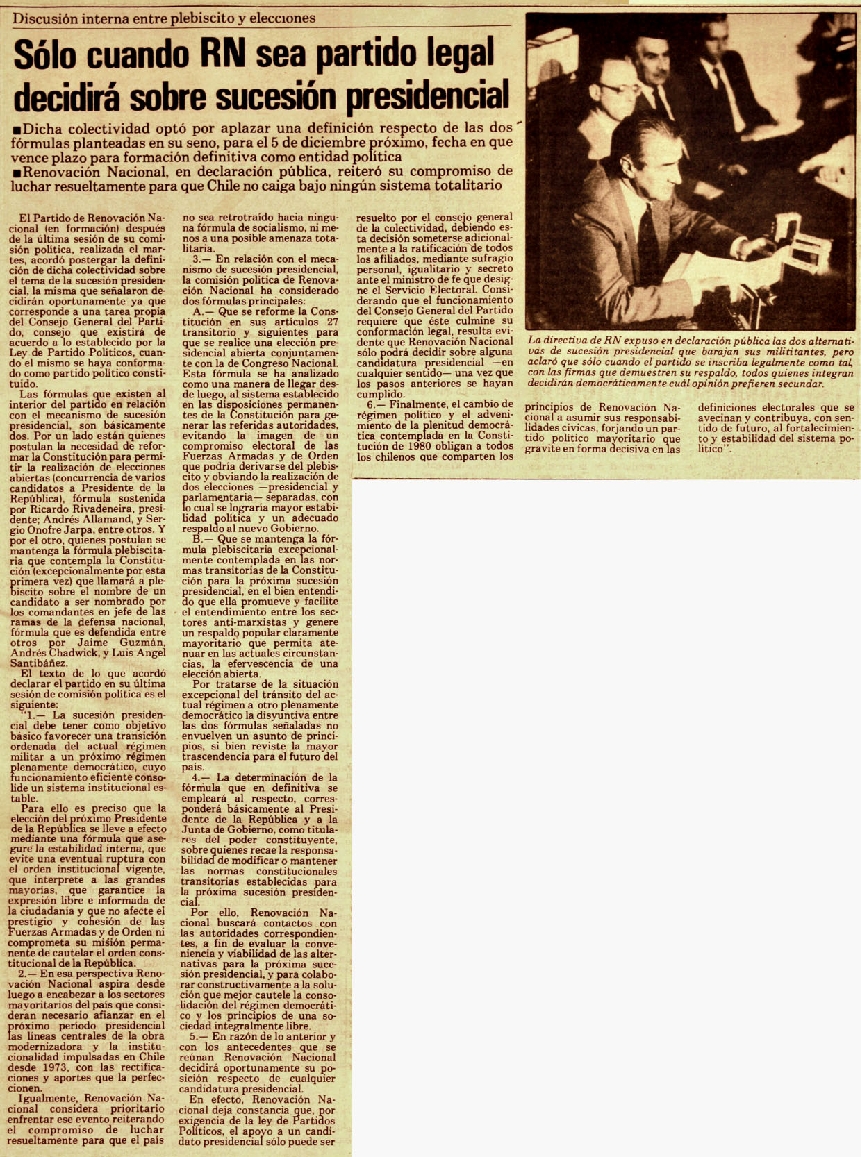 Sólo cuando RN sea partido legal decidirá sobre sucesión presidencial
