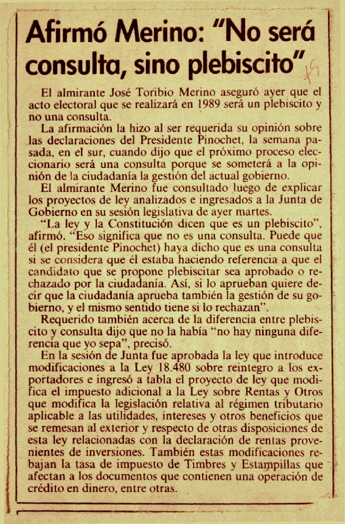 Afirmó Merino: "No será consulta, sino plebiscito"