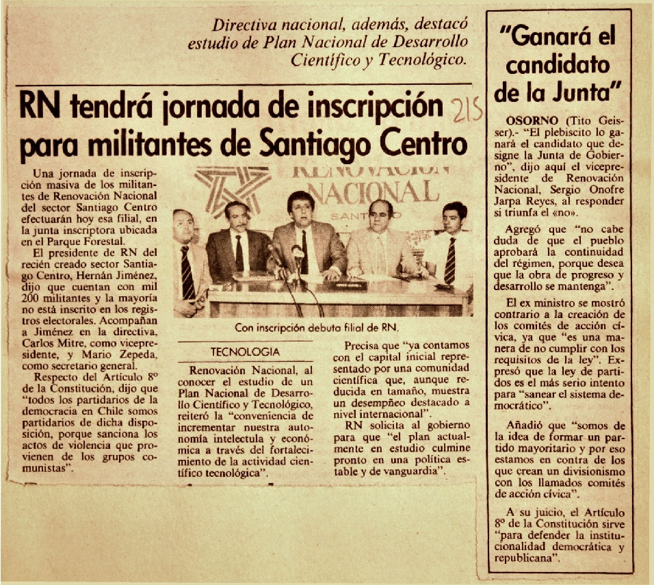 RN tendrá jornada de inscripción para militantes de Santiago Centro.