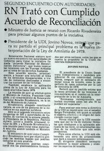 Francisco Cumplido se reunió con Ricardo Rivadeneira con el fin de tratar el Acuerdo Nacional de Reconciliación Definitivam