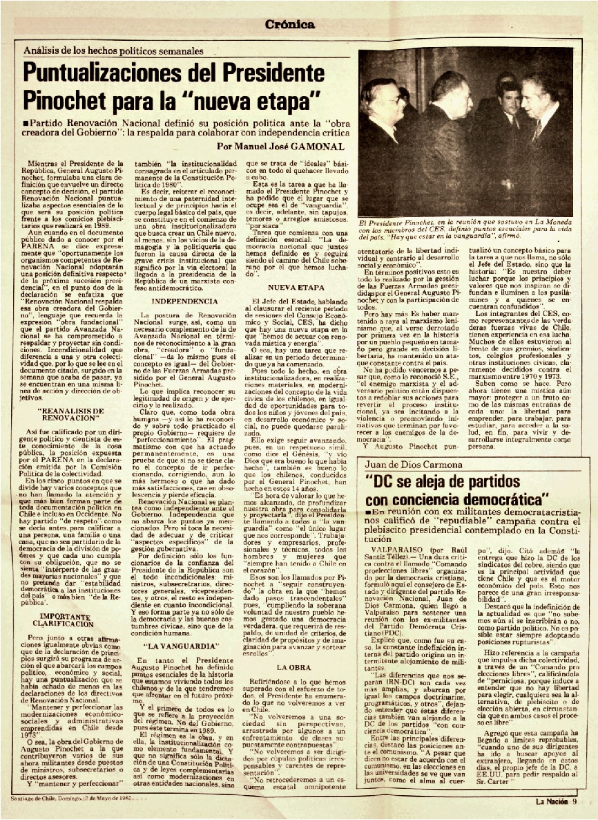 Puntualizaciones del presidente Pinochet para la nueva etapa.