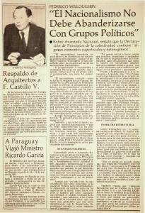 Nota de prensa con la opinión de Willoughby sobre situación actual de los nacionalistas tradiocionales.