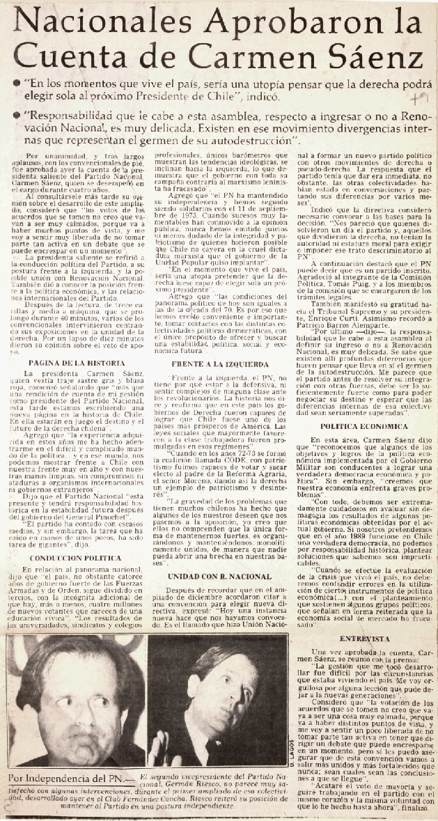 Nacionales aprobaron la cuenta de Carmen Sáenz.