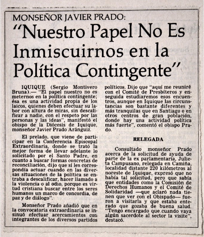 "Nuestro papel no es inmiscuirnos en la política contingente"