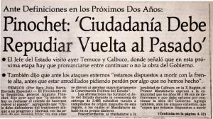 Pinochet: "Ciudadanía debe repudiar vuelta al pasado"