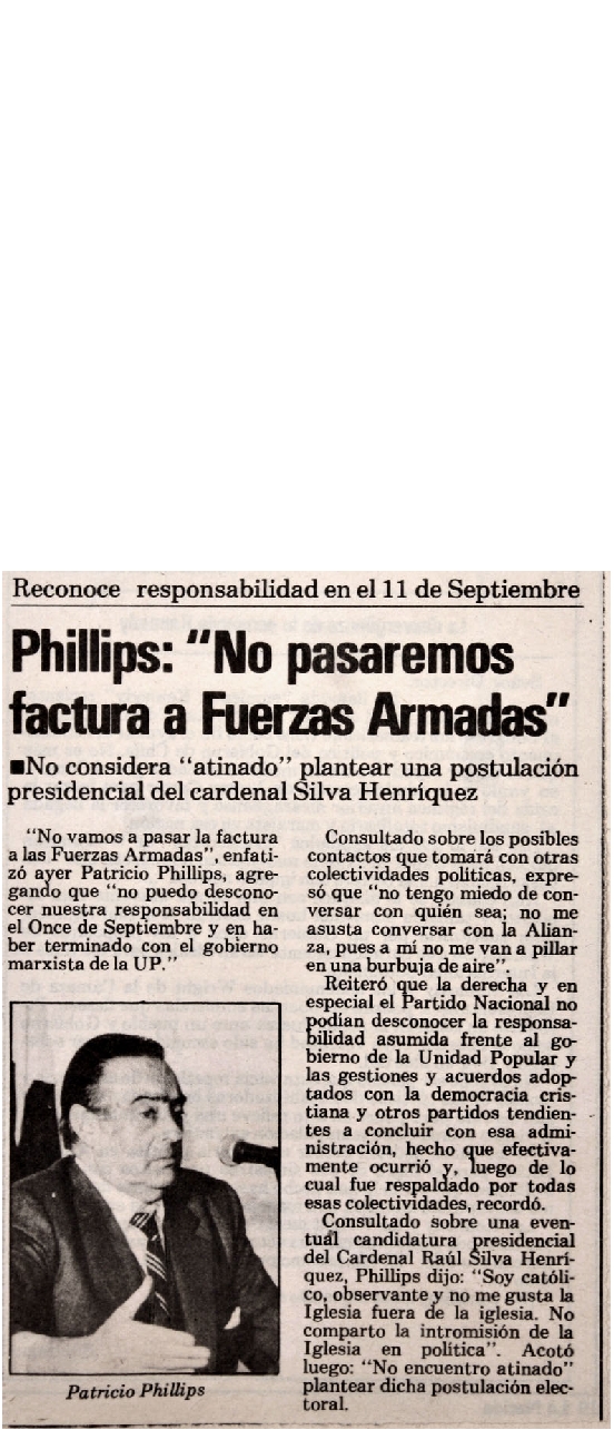 Phillips no considera adecuado plantearse una postulación presidencial del Cardenal Silva Henriquez.