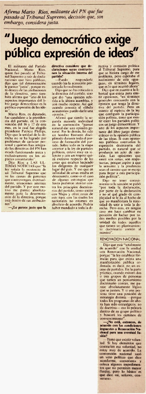 Ultimas Noticias, Santiago, 30 de mayo de 1987