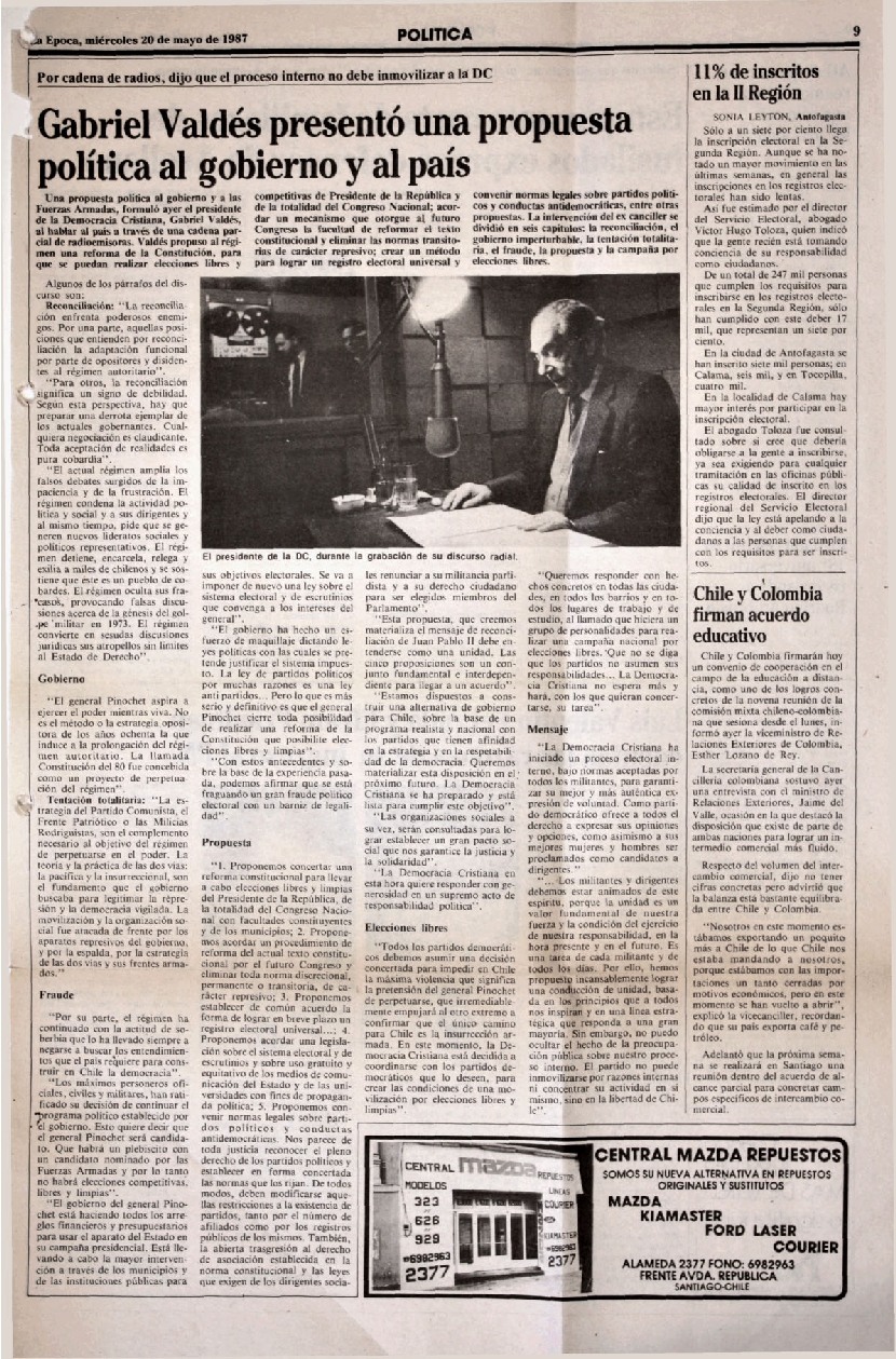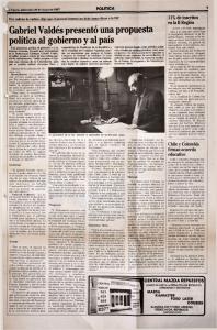 Gabriel Valdés presentó una propuesta política al gobierno y al país.