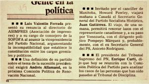 Noticias de Luis Valentín Ferrada, Andrés Allamand, Juan Gutiérrez y de Enrique Curti.