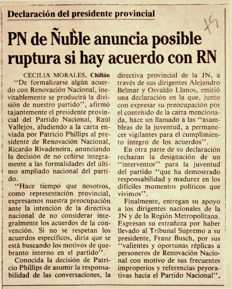 PN de Ñuble anuncia posible reuptura si hay acuerdo con RN.
