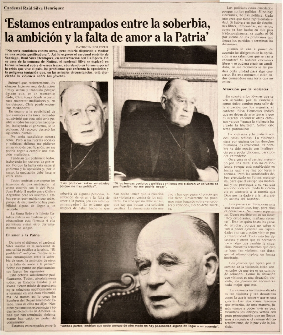 Cardenal Silva dispuesto a mediar en crisis nacional.