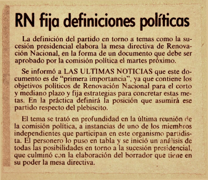 La definición del partido en torno a temas como la sucesión presidencial elabora la mesa directiva de Renovación Nacional.