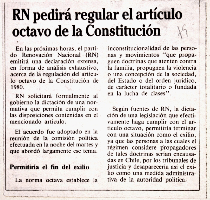RN pedirá regular el artículo octavo de la Constitución.