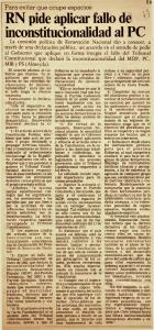RN pide aplicar fallo de inconstitucionalidad al PC.