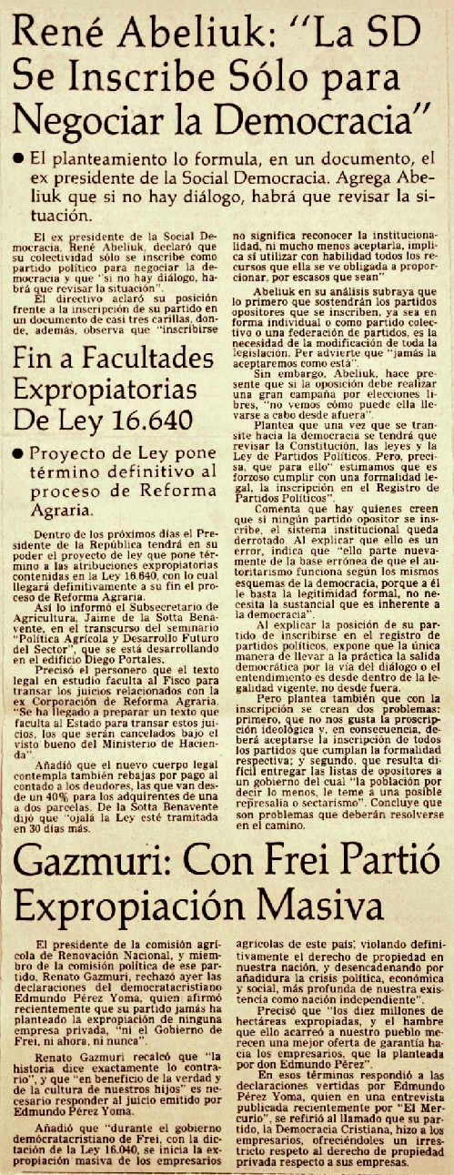 René Abeliuk: "La SD se incribe sólo para negociar la democracia"
