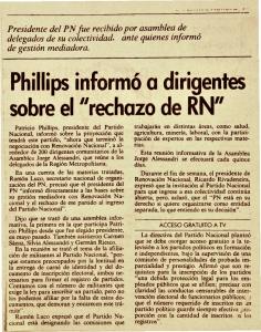 Phillips informó a dirigentes sobre el "rechazo de RN"