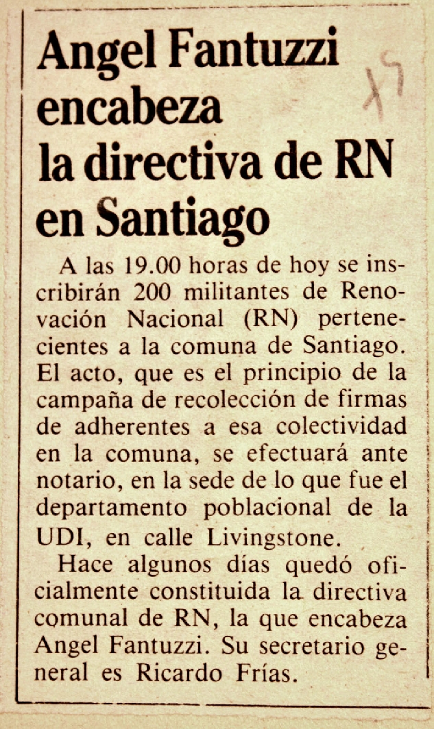Angel Fantuzzi encabeza la directiva de RN en Santiago.
