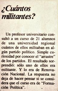En un curso de 21 alumnos solo 1 de ellos es militante.