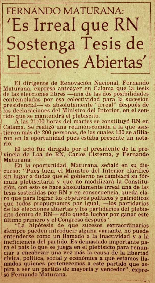 "Es Irreal que RN Sostenga Tesis de Elecciones Abiertas"