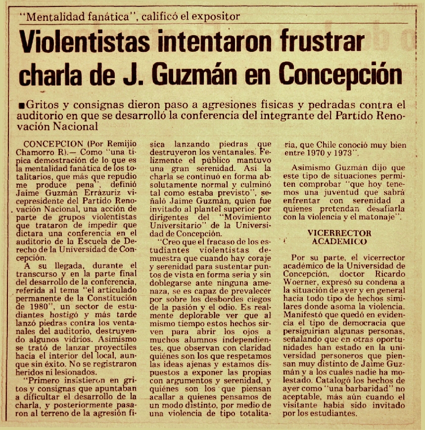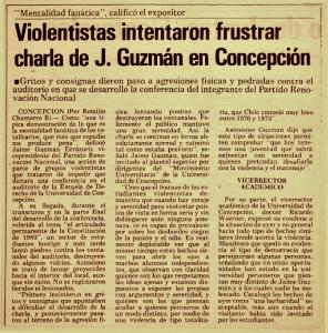 Violentistas intentaron frustrar charla de J. Guzmán en Concepción