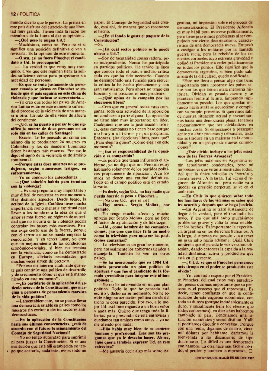 Ex embajador analiza la situación chilena y nombra su candidato.