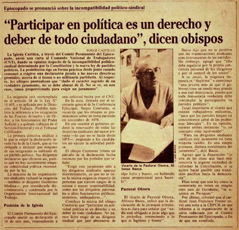 Episcopado se pronunció sobre la incompatibilidad político-sindical.