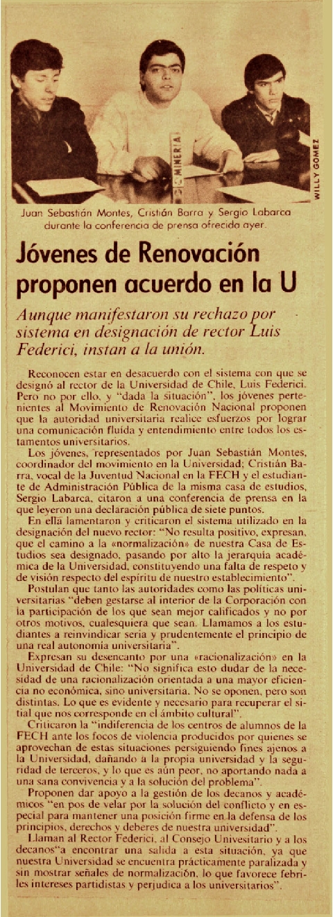 Ultimas Noticias, Santiago. 30 Agosto 1987