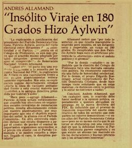 "Insólito Viraje en 180 Grados Hizo Aylwin"