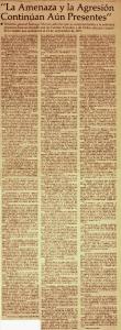 "La Amenaza y la Agresión Continúan Aún Presentes"