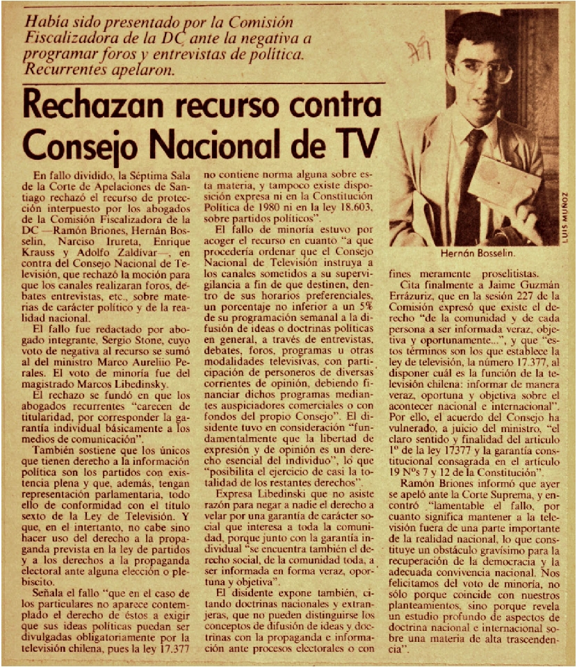 Había sido presentado por la Comisión Fiscalizadora de la DC, ante la negativa a programar foros y entrevistas de política. Recurrentes apelaron.