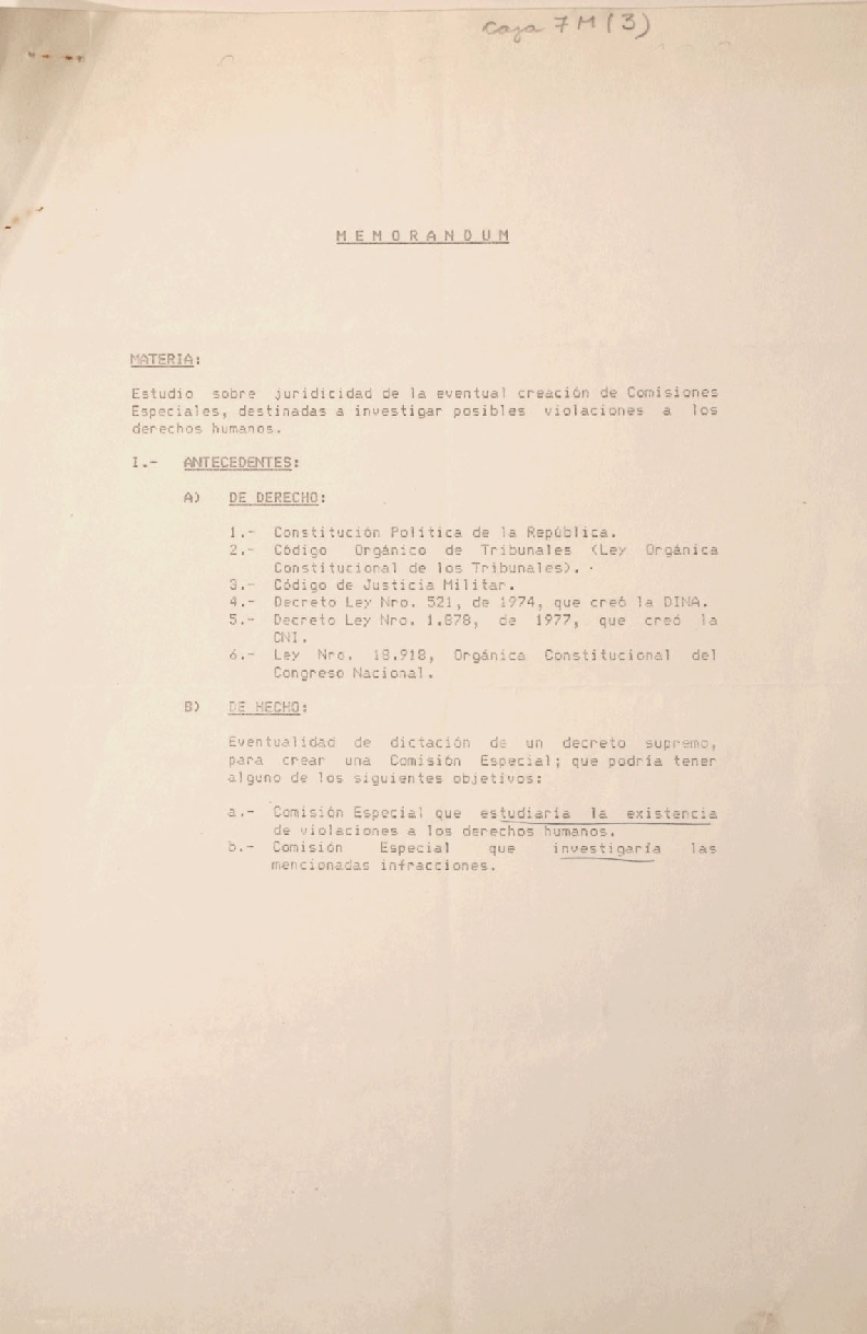 Memorandum : Materia : Estudio sobre...