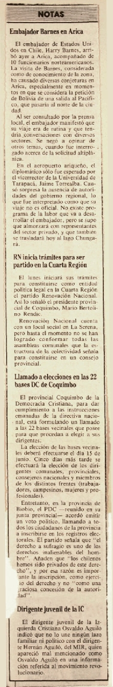 Embajador Barnes en Arica.