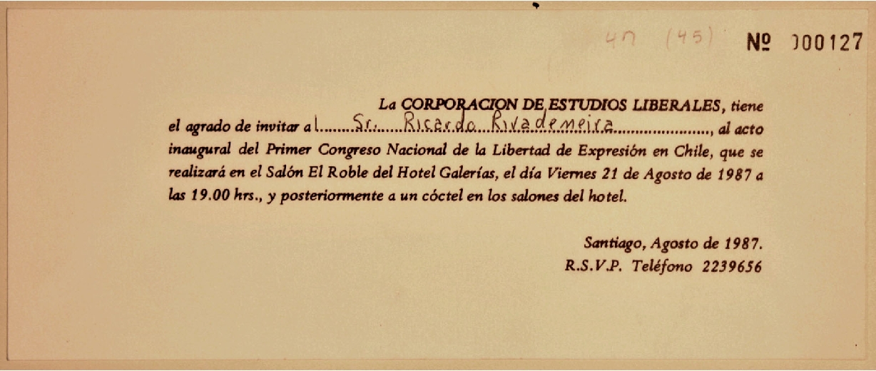 Tarjeta dirigida a Ricardo Rivadeneira...