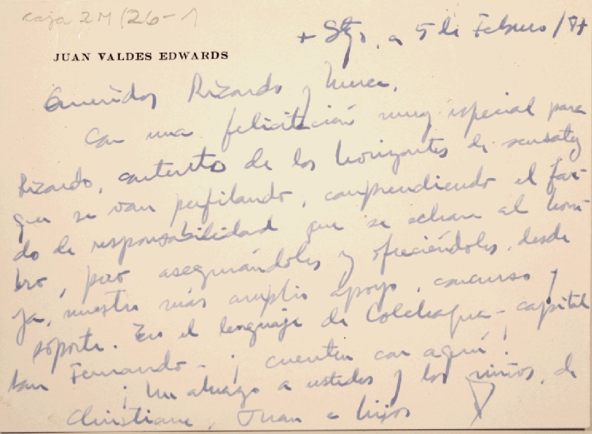 Tarjeta dirigido a Ricardo Rivadeneira...
