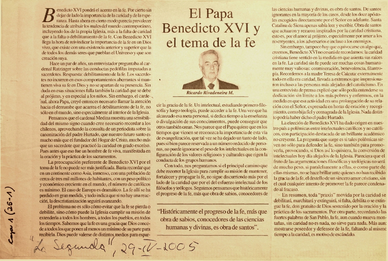 El Papa Benedicto XVI y el tema de la...